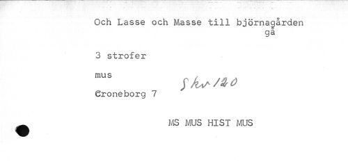 //// Och Lasse och Masse till björna^ården //// ga //// 3 strofer //// mu s , //// (2roneborg 7 //// MS MUS HIST MUS ////