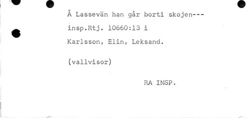 //// c //// A Lassevän han går borti skojen--- //// ^ insp.Rtj. 10660:13 i //// Karlsson, Elin, Leksand. //// (vallvisor) //// RA INSP. ////