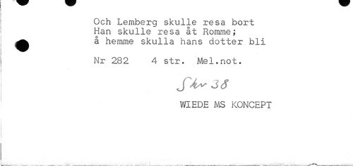 //// Och Lemberg skulle resa bort Han skulle resa åt Romme; ^ å hemme skulla hans dotter bli //// Nr 282 4 str. Mel.not. //// Su 3 S //// WIEDE MS KONCEPT ////