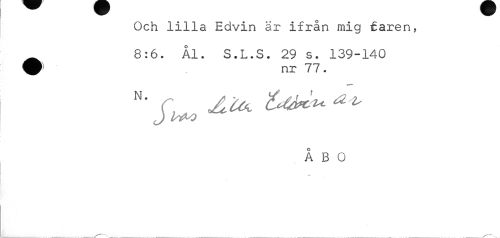 //// Och lilla Edvin är ifrån mig faren, 8:6. Ål. S.L.S. 29 s. 139-140 //// J WO //// ÅBO //// 0 ////