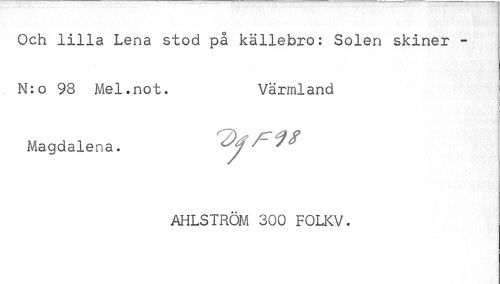 //// Och lilla Lena stod på källebro: Solen skiner -N:o 98 Mel.not. Värmland //// Magdalena. ^ //// AHLSTRÖM 300 FOLKV. ////