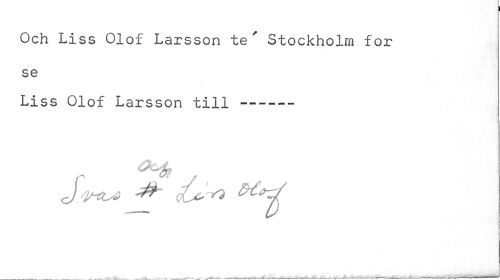 //// Och Liss Olof Larsson te" Stockholm for se //// Liss Olof Larsson till --- //// CllHL* tiCel^ ////