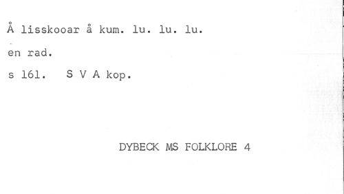 //// o //// A lisskooar å kum. lut. lu. lu. en rad. //// s 161. S V A kop. //// DYBECK MS FOLKLORE 4 //// i ////