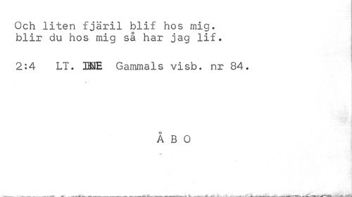 //// Och liten fjäril blif hos mig. blir du hos mig så har jag lif. //// 2:4 LT. 3HSE Gammals visb. nr 84. //// ÅBO //// . _ _ ... ..mU U. —-___.. ^ . -LV -___ . . . _---___f. . ////