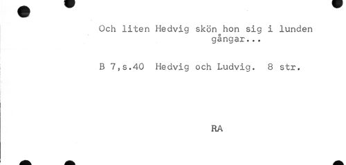 //// Och liten Hedvig skön hon sig i lunden //// gångar... //// B 7,s.40 Hedvig och Ludvig. 8 str. //// RA ////