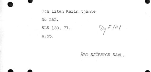 //// Och liten Karin tjänte //// ? //// No 262. //// SLS 130, 77. ' ./ r/O f //// s .55. //// ÅBO SJÖBERGS SAML. ////