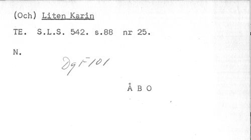 //// (Och) Liten Karin //// TE. S.L.S. 542. s.88 nr 25. //// N. //// ty A AV //// ÅBO //// J ////