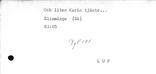 //// - • - - - - - - ~ v. . . //// . //// Och liten Karin tjänte... //// • • //// Slimminge (Sk) 83:85 //// L U F ////