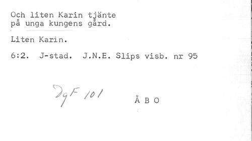 //// Och liten Karin tjänte på unga kungens gård. //// Liten Karin. //// 6:2. J-stad. J.N.E. Slips visb. nr 95 //// % /r /O / x n ^ //// j A B O ////
