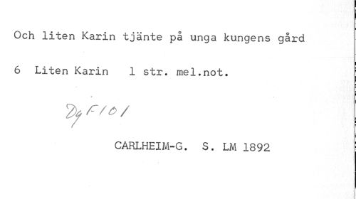 //// Och liten Karin tjänte på unga kungens gård //// ii //// 6 Liten Karin 1 str. mel.not. ; //// i //// CARLHEIM-G. S. LM 1892 : ////