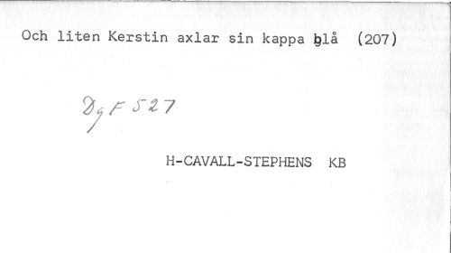 //// Och liten Kerstin axlar sin kappa £lå (207) //// _ //// ^ f SZ 7 //// H-CAVALL-STEPHENS KB //// - //// j ] ////