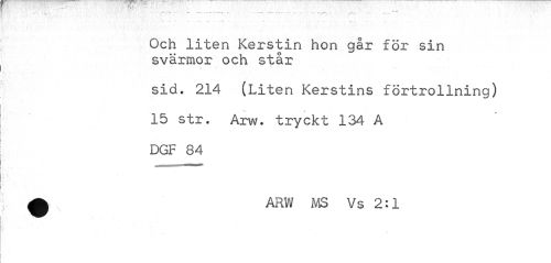 //// ^ • i» v 4 ^ T T* 111», i //// Och liten Kerstin hon går för sin svärmor och står //// sid. 214 (Liten Kerstins förtrollning) 15 str. Arw. tryckt 134 A DGF 84 //// ^ ARW MS Vs 2:1 ////