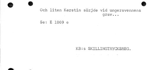 //// Och liten Kerstin sörjde vid ungersvennens //// grav... //// Se: E 1869 e //// KB:s SKILLINGTRYCKSREG. //// .. ... , ////