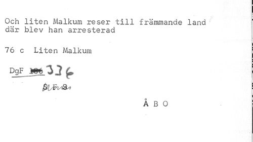 //// Och liten Malkum reser till främmande land där blev han arresterad //// ! //// 76 c Liten Malkum j //// DgF Wé 3 2 ^ ' //// fri&lASU //// ÅBO //// ¦ i ii ////