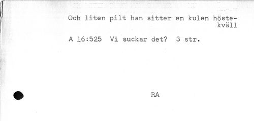 //// m v • //// 7 r T TT" //// Och liten pilt han sitter en kulen höstekväll //// A 16:525 Vi suckar det? 3 str. ////