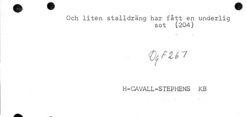 //// Och liten stalldräng har fått en underlig //// sot (204) //// H-CAVALL-STEPHENS KB //// • * * ////