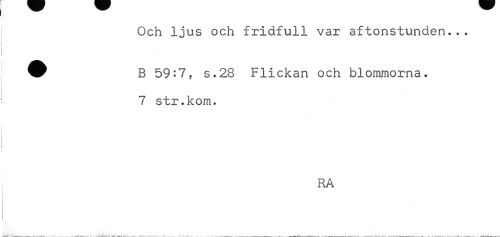//// Och ljus och fridfull var aftonstunden.•. //// ^ B 59:7, s.28 Flickan och blommorna. //// 7 str.kom. //// RA ////