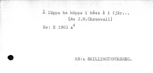 //// O //// A löppa ho hoppa i båss å i fjär... //// (Av J.H.Chronvall) Se: E 1903 a4 //// i //// ^ KB:s SKILLINGTRYCKSREG. //// ' ~ " * t ////
