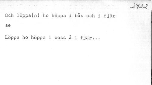 //// Och loppa(n) ho hoppa i bås och i fjär se //// Loppa ho hoppa i boss å i fjär... ////