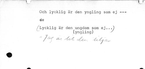 //// Och lycklig är den yngling som ej --- //// de //// ^Lycklig är den ungdom som ej...) //// (yngling) ////