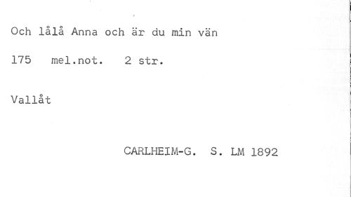 //// f //// Och lålå Anna och är du min vän 175 mel.not. 2 str. //// Vallåt //// CARLHEIM-G. S. LM 1892 ////