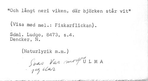 //// "Och långt neri viken, dar björken står vit" (Vi //// sa med mel»: Fiskarflickan). //// Sdml. Ludgo, 8473, s.4. Dencker, N. //// (Naturlyrik m.m.) //// fl^/J U L M A //// ___^ • ' m* itli i'ki4 ihfifm , iM'' .n."ii * ... . Jpi i..-. ^J^r^^-K^ —J ////
