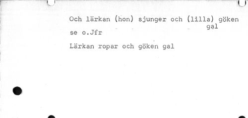 //// Och lärkan (hon) sjunger och (lilla) göken //// gal //// se o.Jfr //// Lärkan ropar och göken gal ////
