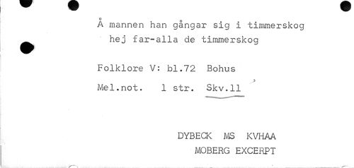 //// o //// A mannen han gangar sig i timmerskog ^^ hej far-alla de timmerskog //// Folklore V: bl.72 Bohus Mel.not. 1 str. Skv.ll //// DYBECK MS KVHAA MOBERG EXCERPT //// A » - ////