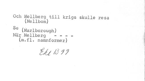 //// Och Mellberg till krigs skulle resa (Me11bom) //// Q //// e (Marlborough) Nar.Mellberg - - - -(m.f1. namnformer) //// i //// &I//319 ////