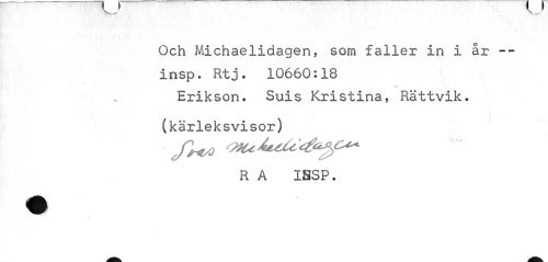 //// Och Michaelidagen, som faller in i år --insp. Rtj. 10660:18 //// Erikson. Suis Kristina, Rättvik. //// (kärleksvisor) //// R A ISSP. ////