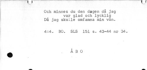 //// Och minnes du den dagen då jag //// var glad och lycklig Då jag skulle omfamna min vän. //// 4:4. BO. SLS 151 s. 43-44 nr 34. //// i //// • ÅBO ////