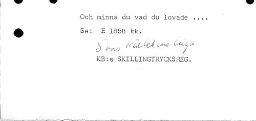 //// Och minns du vad du lovade ... A Se: E 1858 kk. //// KB:s SKILLINGTRYCKSREG. ////