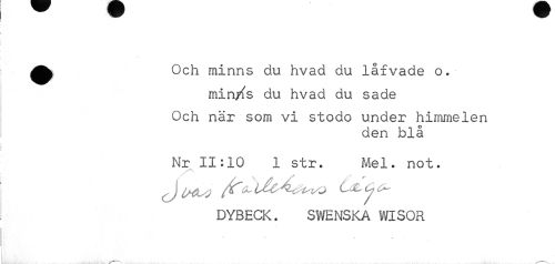 //// ^^ Och minns du hvad du låfvade o. //// min/fs du hvad du sade //// Och när som vi stodo under himmelen //// den blå //// Nr 11:10 1 str. Mel. not. //// DYBECK. SWENSKA WISOR ////