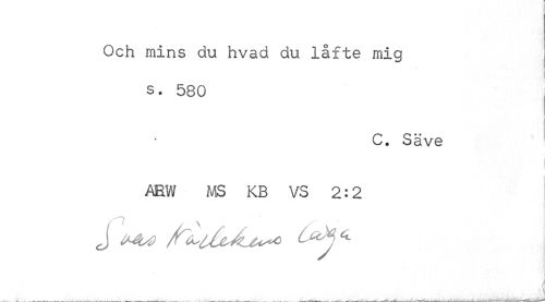 //// Och mins du hvad du låfte mig s. 580 //// C. Säve //// i //// AEW MS KB VS 2:2 //// J mu //// i i l ////