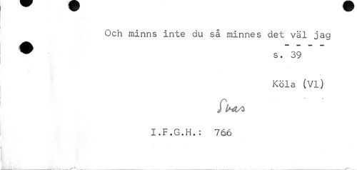 //// Och minns inte du så minnes det väl jag //// W s. 39 //// Köla (VI) //// I.F.G.H.: 766 //// r ////