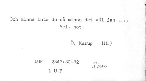 //// t //// I" //// Och minns inte du så minns det väl jag ... //// r i //// Mel. not. //// T //// Ö. Karup (Hl) //// V //// LUF 2343:30-32 //// J //// LUF ////
