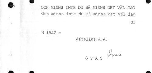 //// ^ OCH MINNS INTE DU SÅ MINNS DET VÄL JAG //// Och minns inte du så minns det väl jag //// 21 //// N 1842 e //// Afzelius A.A. S V A S //// a. A A ////