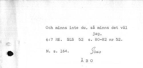 //// Och minns inte du, så minns det väl //// jag, //// 6:7 RE. SLS 52 s. 80-82 nr 52. //// I ife^, fl f //// ^ N. s. 164. //// ÅBO ////