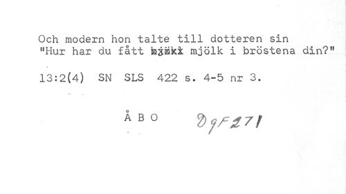//// Och modern hon talte till dotteren sin "Hur har du fått fajiski mjölk i bröstena din?" //// 13:2(4) SN SLS 422 s. 4-5 nr 3. //// ÅB0 ////