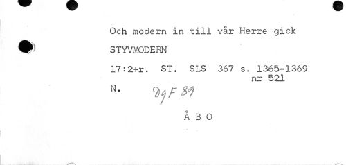 //// Och modern in till vår Herre gick //// V STYVMODERN //// 17:2+r. ST. SLS 367 s. 1365-1369 //// nr 521 //// yr*? //// ÅBO ////
