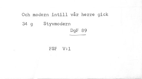 //// Och modern intill vår herre gick 34 g Styvmodern //// DgF 89 //// -¦ ... | |M i nBir- //// FSF V: 1 ////