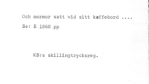 //// Och mormor satt vid sitt kaffebord ... Se: E 1868 pp //// KB:s skillingtrycksreg. //// I ////