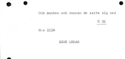 //// Och munken och nunnan de satte sig ned //// D 26 t * //// N:o 212A //// SÄVE LEKAR ////