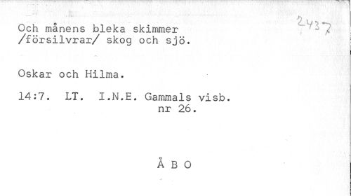 //// Och månens bleka skimmer . I //// /försilvrar/ skog och sjö. //// Oskar och Hilma. //// 14:7. LT. I.N.E. Gammals visb. //// nr 26. //// ÅBO //// »•t ////