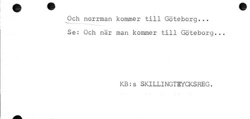//// Och norrman kommer till Göteborg... //// * ' ~ ---,--- //// Se: Och när man kommer till Göteborg... //// KB:s SKILLINGT1YCKSREG. ////