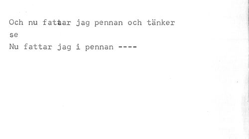 //// Och nu fattar jag pennan och tänker se //// Nu fattar jag i pennan --- //// l //// / //// • i ////