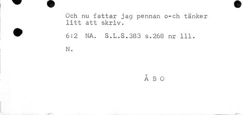 //// Och nu fattar jag pennan o-ch tänker litt att skriv. //// ^ 6:2 NA. S.L.S.383 s.268 nr 111. //// N. //// ÅBO //// ___ ////