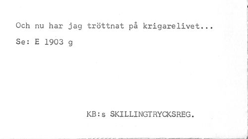 //// I //// f //// I //// f //// Och nu har jag tröttnat på krigarelivet... I //// | //// Se: E 1903 g //// I //// i i //// KB:s SKILLINGTRYCKSREG. //// i ////