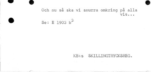 //// Och nu så ska vi snurra omkring på alla //// vis... //// ® Se: E 1903 hö //// KB:s SKILLINGTRYCKSREG. ////