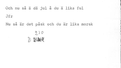 //// Och nu så ä dä jul å du ä lika ful Jfr //// Nu så är det påsk och du är lika morsk //// 5,3 0 ////